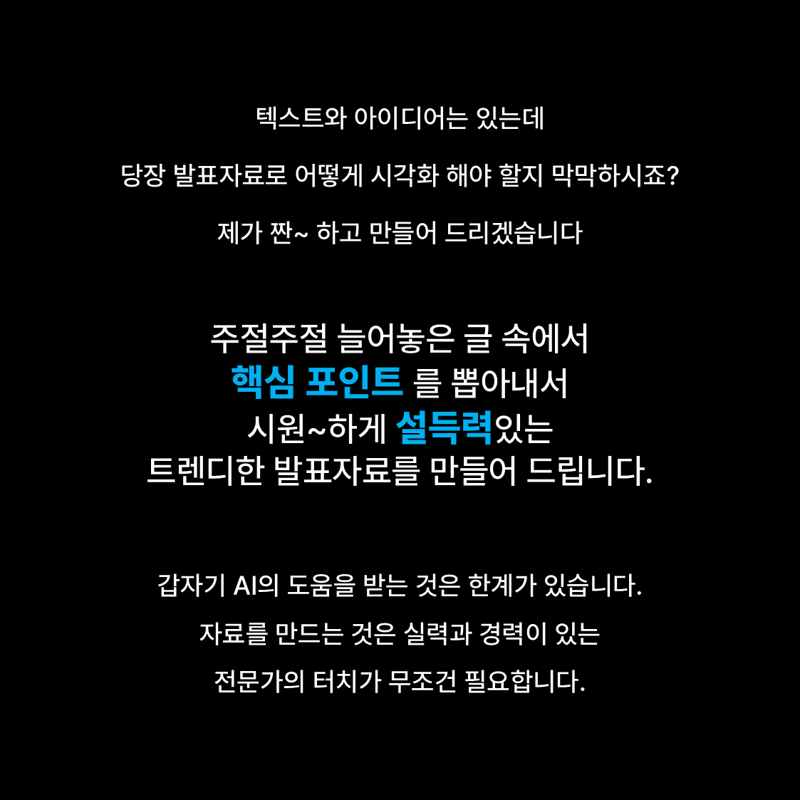 명확한 전달력과 설득력을 가진 Presentaton 자료를 디자인해 드립니다