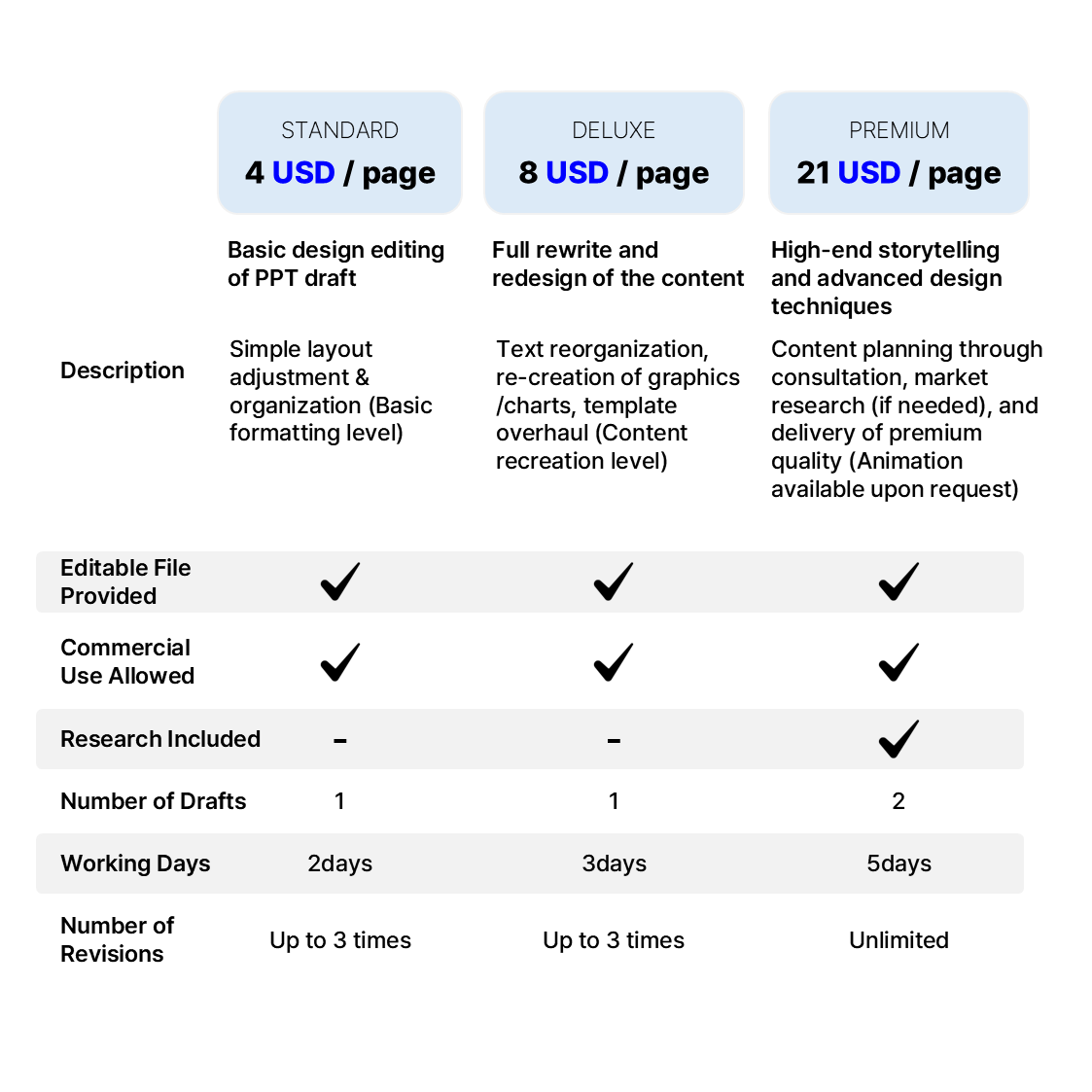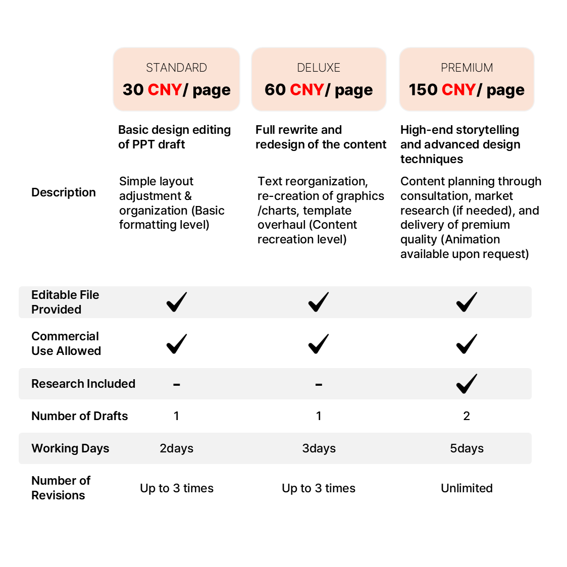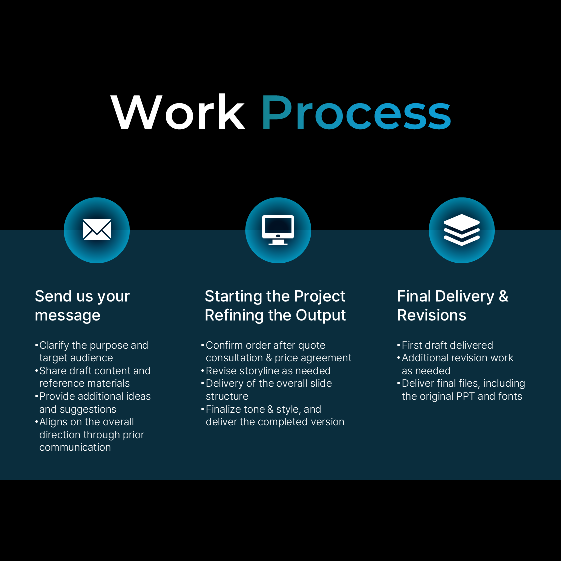 You’ll receive the final PPT file, along with any fonts or assets used.